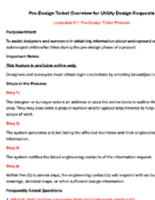 - Filing a locate request for underground or submerged utilities to be located, submitting a second request, updating or cancelling a ticket.